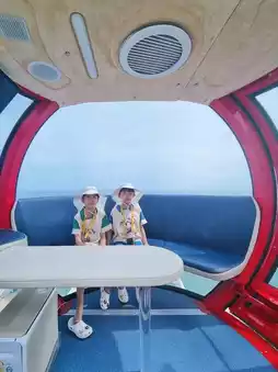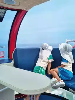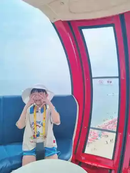 Sokcho Eye, a colorful Ferris wheel located on the coast of Sokcho. While it's beautiful during the night, it's also great to visit in the morning to avoid waiting and enjoy the blue ocean. The red Ferris wheel is especially beautiful. ❤️