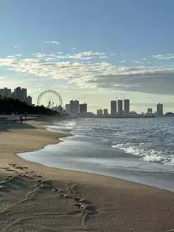 The color of the sea wasn't cloudy or dull, but pretty, and the Ferris wheel seen from the beach made the scenery exotic.