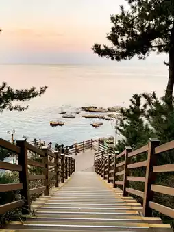 Oeongchi Bada Hyangiro Trail (์ธ์น์น ๋ฐ๋คํฅ๊ธฐ๋ก) is a walking trail built along the coast, starting at Sokcho Beach, passing along the Oeongchi Coast and ending at Oeongchi Port. It is recommended to come in the evening to watch the sunset. The light is very beautiful and romantic. It is also a filming location for the Korean series Encounter. If you are a fan of the series, you can follow in its footsteps.