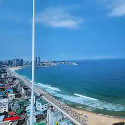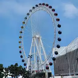 Sokcho I-Dae Ferris Wheel where you can feel the blue sky and blue sea at the same time~ It's not easy to wait in line in the hot summer, but fortunately, the cool equipment in between and the line that moves quickly made it comfortable to ride :) ~ There's no air conditioning in the Ferris wheel, so I would never have ridden it, but it was spacious and cool inside! It's not as high as I thought, so I don't think you have to worry about acrophobia ^ㅇ^ I rode for about 15 minutes, and the night view seems great even if you ride in the afternoon~ Next time, I'll make a reservation to see the night view!