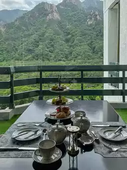 However, please note that the afternoon tea set is not available on the rooftop due to safety issues.