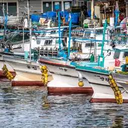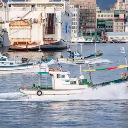 In the early morning, Dongmyeong Port is a spectacular sight of ships returning to the port after work