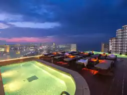 A rooftop infinity pool with a beautiful night view, Home Marina Sokcho Hotel👙