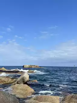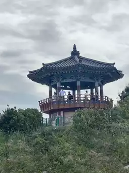 A peaceful and relaxing seaside pavilion, located on a rocky shore, offers a panoramic view of the sea. The sea breeze and the sound of waves hitting the rocks add to the relaxing feeling. It is a great place to take a walk or just relax. It is also a popular spot to watch the sunrise and the night sky as the colors change and the sunlight reflects off the water. There is a walking path where you can take a walk and take pictures. There are also restaurants and cafes nearby where you can stop by to try fresh seafood, making it a great place to spend the day.