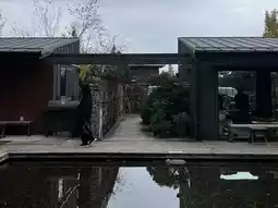 When you see rain falling into the puddle in the middle of the cafe on a rainy day,