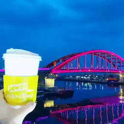 The cafe is on the 2nd floor, and the interior is spacious and has an ocean view of Seorak Bridge in Sokcho!!