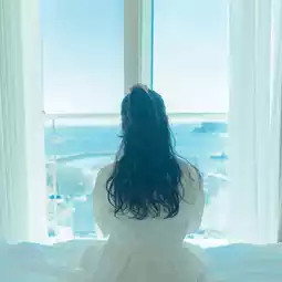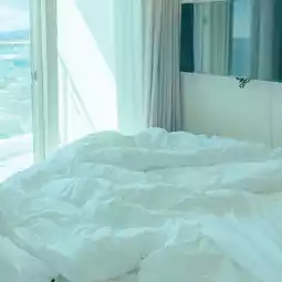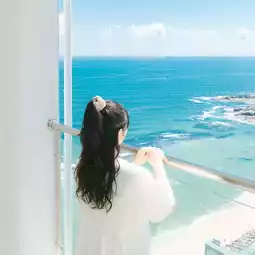 As soon as I opened my eyes and closed the curtains, an emerald ocean view greeted me🤍