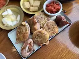 We ordered mulhoe for two, one hoe-deopbap (raw fish rice bowl), and one squid sundae (stuffed squid).