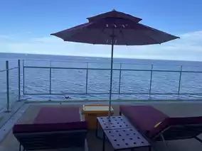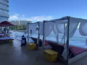 I sat on a sunbed and enjoyed a cool drink and a splash of water, feeling like I was really resting.