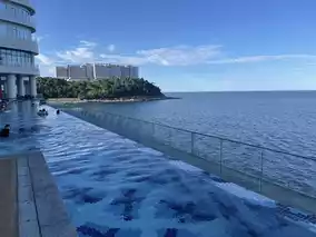 The ocean view from the outdoor infinity-style pool is truly a work of art. The ocean spread out before my eyes while swimming gave me an exotic feeling.