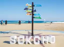 Sokcho Beach, a renowned destination along the East Coast of Gangwon Province, boasts crystal-clear waters and pristine sandy shores 🌅✨