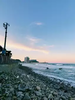 Around the seaside, there are small cafes and food stalls where you can enjoy a quick snack or drink while taking a break. If you're with children, the beach is perfect for spending time playing in the sand. Especially at sunset, the sky and sea blend into a stunning red hue, making it an ideal spot for photography.