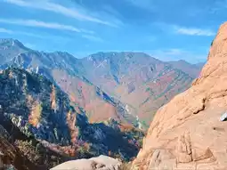 From the summit, you can enjoy breathtaking views of Seoraksan Mountain's beautiful peaks, Ulsanbawi Rock, and the East Sea, making it a popular destination year-round.