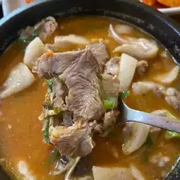Abai Sundae, famous in Sokcho, has meat, vegetables, and noodles, so it's different from regular sundae, and has a light texture and a juicy texture. There's a lot of meat and sundae in the soup, so it doesn't mix well. It's really delicious and the portion is large.