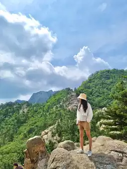 In Seoraksan National Park, you can take a cable car to Gwon Geum Seong. You can get there quickly by getting off the cable car and going up for about 10 minutes. However, in the middle of summer, there is no place to block the shade, so ice water is a must!! The road is rough, so sneakers are also a must!! Our country's Seoraksan is really beautiful👍