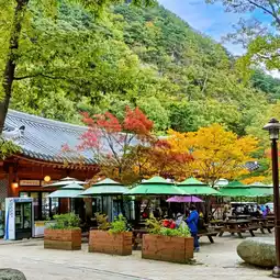 There are a few Korean restaurants and cafes around Seoraksan National Park. As we are at Seoraksan till 3pm, we decided to have our lunch outdoors under the colourful fall foliage.