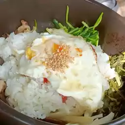 We had also ordered a bibimbap, which is a Korean mixed rice dish with vegetables. Some banchan (vegetables side dishes) were also given with our lunch meals.