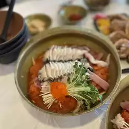 Key Point: Sokcho has two great mulhoe (raw fish) restaurants! This time, I visited Cheongcho Mulhoe, a large restaurant with a photo zone. The mulhoe was still delicious, and all the seafood was fresh!