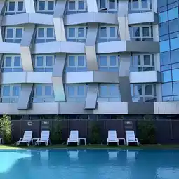 It's a hotel that's only been open for 2 years, so it's clean and great for a pleasant day!