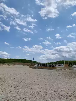 🌊 The beach stretches on for kilometers, so you can choose between swimming, a long shoreline walk, or simply lying on your towel listening to the wind and waves. On breezier days, small waves roll in - perfect for a little bodyboarding. On calm days, the water turns into a giant turquoise swimming pool.