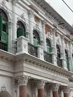 Panam City was a residential area for wealthy Hindu and Armenian merchants in the late 19th century. Over 50 brick houses, blending European and Mughal architectural styles, line a quiet, straight road. Now mostly uninhabited, the area exudes a nostalgic atmosphere as if time has stood still.