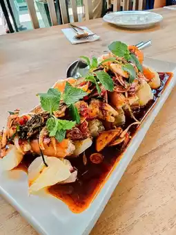 The atmosphere is shady and cool with a variety of trees, offering a modern feel (honestly, I didn't expect such a great restaurant around here, as I grew up here). The restaurant is also air-conditioned, making it a perfect place to relax during your trip.