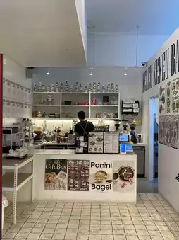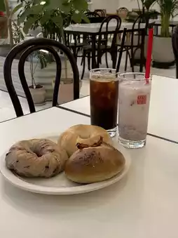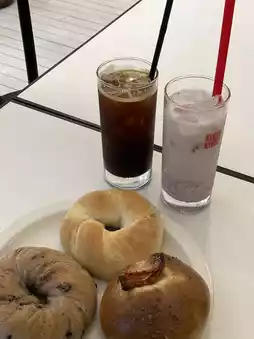 🤍Convenient parking available within the building, and the spacious table arrangement creates a very comfortable atmosphere. The store is clean, and the owner is incredibly friendly. They offer a variety of menu items, including bagels, pies, and freshly made soup. Especially before 11 AM, you can enjoy a morning set with soup, bagel, and a mini salad at an affordable price. Personally, I loved the Sun Basil Bagel—the combination of basil and tomato was absolutely delicious. The coffee is rich, and the strawberry latte is perfectly sweet, just right for my taste. A place with great ambiance and delicious food—highly recommended!