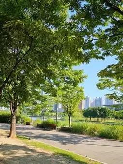 In spring, cherry blossoms and fresh greenery blend harmoniously, while in summer, cool tree shades provide relief. Autumn brings vibrant red foliage, and winter offers serene waterside landscapes that evoke deep emotions. The eastern forest trail area has a more natural ambiance, with long paths perfect for a calming stroll amidst the urban setting.