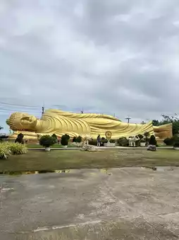 Wat Phra Non Laem Pho is not a very big temple. It is located on Koh Yo next to the sea. It is easy to travel. Drive across the Tin Bridge and you will find the temple. It is a temple with very good air, beautiful sea view, and a view of the reclining Buddha. The golden reclining Buddha is very big. Foreign tours like to take you to see the reclining Buddha at this temple. When we went, we liked Malaysians too.