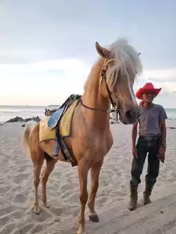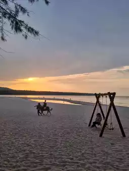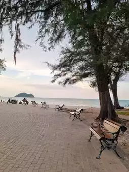 Samila Beach is a serene destination in Songkhla Province, known for its fine white sand and shaded pine trees. The beach's highlights include the Golden Mermaid statue, a symbol of the province, and the Mouse and Cat statues. From here, you can enjoy a clear view of Koh Nu and Koh Maew (Mouse and Cat Islands). Visitors can engage in various activities such as strolling, photography, watching the sunset, picnicking, or renting bicycles or horses for a ride along the beach. Additionally, there are restaurants and souvenir shops nearby.