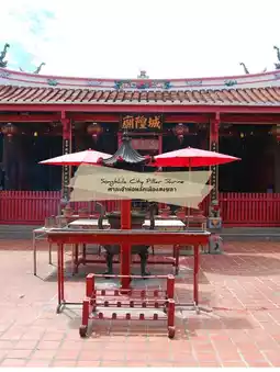 ♨️Songkhla City Pillar Shrine♨️ is an ancient shrine in the heart of Songkhla's Old Town. This beautiful shrine, with its Chinese architecture, is a place of worship for sacred objects and blessings. This Rattanakosin-era historical site, registered by the Fine Arts Department, houses the city pillar made from the Chaiyapruek tree, considered a sacred tree.✨️