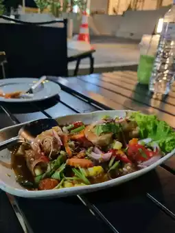 Muen Mai Restaurant, located on Chalatat Beach in Songkhla Province, offers a wide variety of food and beverages. Located on Chalatat Beach, the atmosphere is perfect for enjoying the sea view, especially on a cool evening. There are both air-conditioned and natural seating areas to choose from. In addition to the signature Cha Chak (cha-chak) beverage menu, they also offer a wide selection of single dishes, snacks, and roti. The prices are reasonable and highly recommended.