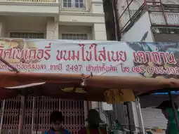 Today, I will take you to eat the most delicious traditional egg cake with butter in Songkhla city. It is called Lert Bakery, which has been open for 67 years. The highlight of this shop is that it is filled with butter, so it is not dry when eaten. It is very delicious. It is sold in bags for 50 baht and boxes for 125 baht. You can store it for a week. If you want to store it, I recommend putting it in a hot air oven before eating. It will be crispy on the outside and soft on the inside. It is so delicious that you won’t be able to tell anyone.