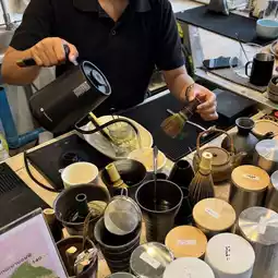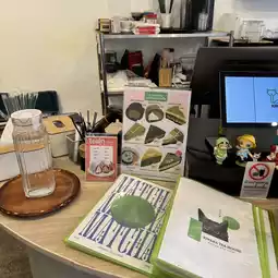 The shop's warm atmosphere, decorated with wood tones and soothing greens, is perfect for relaxing, working, or taking photos for social media. 📸 The beautiful natural light in front of the shop is a must-have.