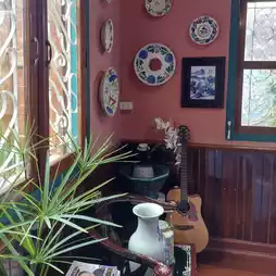 • Vintage and Classic Aristocratic Atmosphere: Stepping inside feels like you've been transported to another era. The decor exudes a nostalgic feel, seamlessly blending the classics of a medieval Thai house with modern touches. There's both an indoor, air-conditioned area decorated with vintage furniture and an outdoor area in a shady garden.