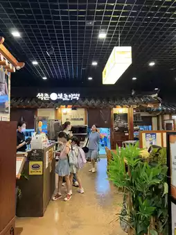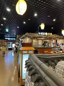 The alleyway that reproduced the traditional market captured the atmosphere of the Joseon Dynasty well, and it was fun to walk because there were hanok-style shops and restaurants lined up.