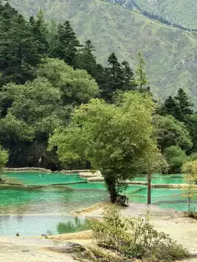 Starting from the entrance, you’ll first walk through lush forests, home to various wildlife such as squirrels and birds. As you ascend, you'll encounter stunning terraced pools filled with vibrant blue, green, and yellow mineral-rich water, known as "calcite travertine formations." These pools, including popular spots like Five-Color Pond and Mirror Pond, are some of the most photographed in the park.