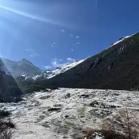 A place surrounded by blue water basins and towering mountains