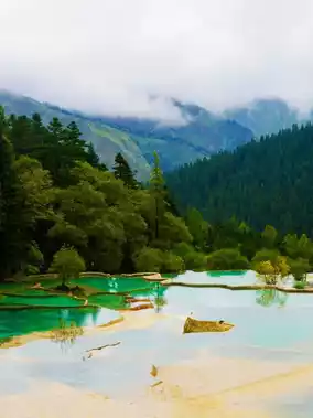 Summary: Visit Huanglong and enjoy the beautiful scenery of Welcome Pool, Golden Sand Beach, and Bonsai Pool.