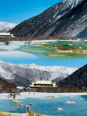 💎The Five-Color Pool, set against the backdrop of ice and snow, appears even more turquoise, like sparkling gems.✨