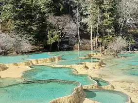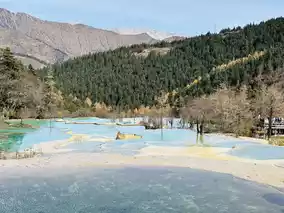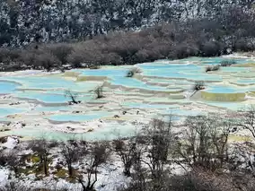 Huanglong is a high mountain located at an altitude of about 2005 to 5000 meters above sea level. The weather is quite good all year round, but I recommend coming in winter because you will get a background of snow-capped mountains and a beautiful blue water. Here, you can walk up to Huanglong or take the cable car and then a golf cart and walk down, but it might be quite a long walk.