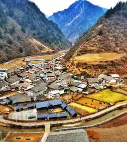 • Sansheyi ancient village • Highland barley fields • Pastures • Primitive shrublands • Distant views of Min Mountains' Snow Treasure Peak • Wooden gateways
