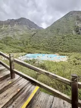 After a **4-hour drive from Jiuzhaigou**, the entrance gate led me into a **misty alpine valley** at **3,000m altitude**. The wooden boardwalk snaked past **pristine pools**, their colors shifting from **jade to sapphire** under the sunlight. The air was crisp, the silence broken only by waterfalls—pure magic.