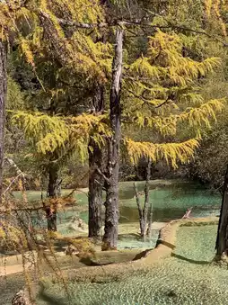 90% of people crowd around the Five-Color Pool at noon, missing the most stunning light and shadow magic. Enter the park before 6:30 AM, when the Five-Color Pool is still wrapped in morning mist, the rising sun dyes the water into flowing glass, and the reflection of Xuebaoding Mountain sways on the poolâs surface. The whole world is so quiet you can only hear the wind. If you canât get up early, enter after 2 PM to avoid tour group peaks. The sunset will gild the golden sands, and walking barefoot on the warm calcite terraces, even the prayer flags become a perfect backdrop.
