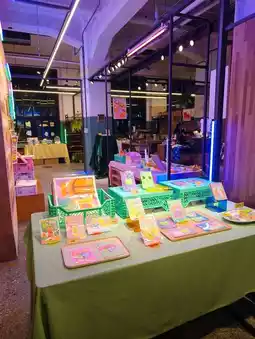 Inside, there were so many creative shops and exhibits. I loved seeing handmade crafts, quirky designs, and even some interactive art pieces. One of my favorite spots was the shop with adorable bunny-themed art and merchandise – it was impossible not to smile at the cute setup!