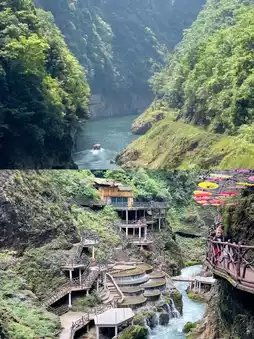 ⛰️The area isn't crowded overall, offering a great experience. The boat ride on the emerald-green river with cool breezes gives a poetic feeling of "green mountains parting as the light boat passes through endless peaks."