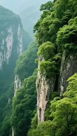 Tongren Grand Canyon features deep gorges with steep cliffs and lush greenery. Stroll along the boardwalk beside crystal-clear streams, listening to the gentle flow beneath your feet. Look up, and you'll see towering peaks and bizarre rock formations—like natural masterpieces. Here, you'll marvel at nature's craftsmanship and feel utterly relaxed.