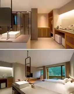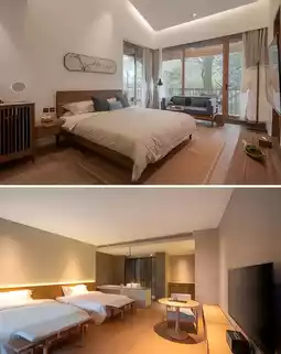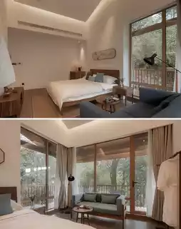 The house is fully integrated into the surrounding natural texture, which is the consistent design style and concept of the original house. Faced with nature and tradition, the purpose of the design is to respect and respect the status quo of the original village, and to rely on and restore the original way of life. There are more than 100 guest rooms, each room faces the mountain view, the space is large enough and the photos are particularly good, and the room type has two design styles, Chinese and Japanese. The room is fully equipped and you can start a relaxing holiday life when you check in.