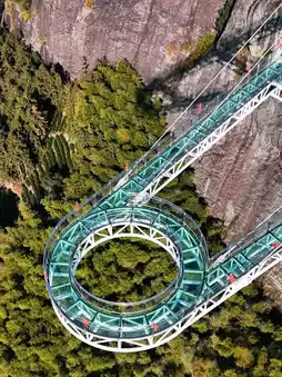 ✨Glass Slide: The entire slide is built along the cliff 🏔, with a total length of 520 meters and a vertical height difference of more than 180 meters, from the top of the mountain to the foot of the mountain‼️