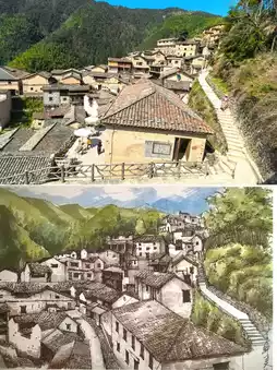 —The entire village is perched on the edge of a cliff, with houses stacked upon each other, making it a representative example of cliff-dwelling ancient villages.